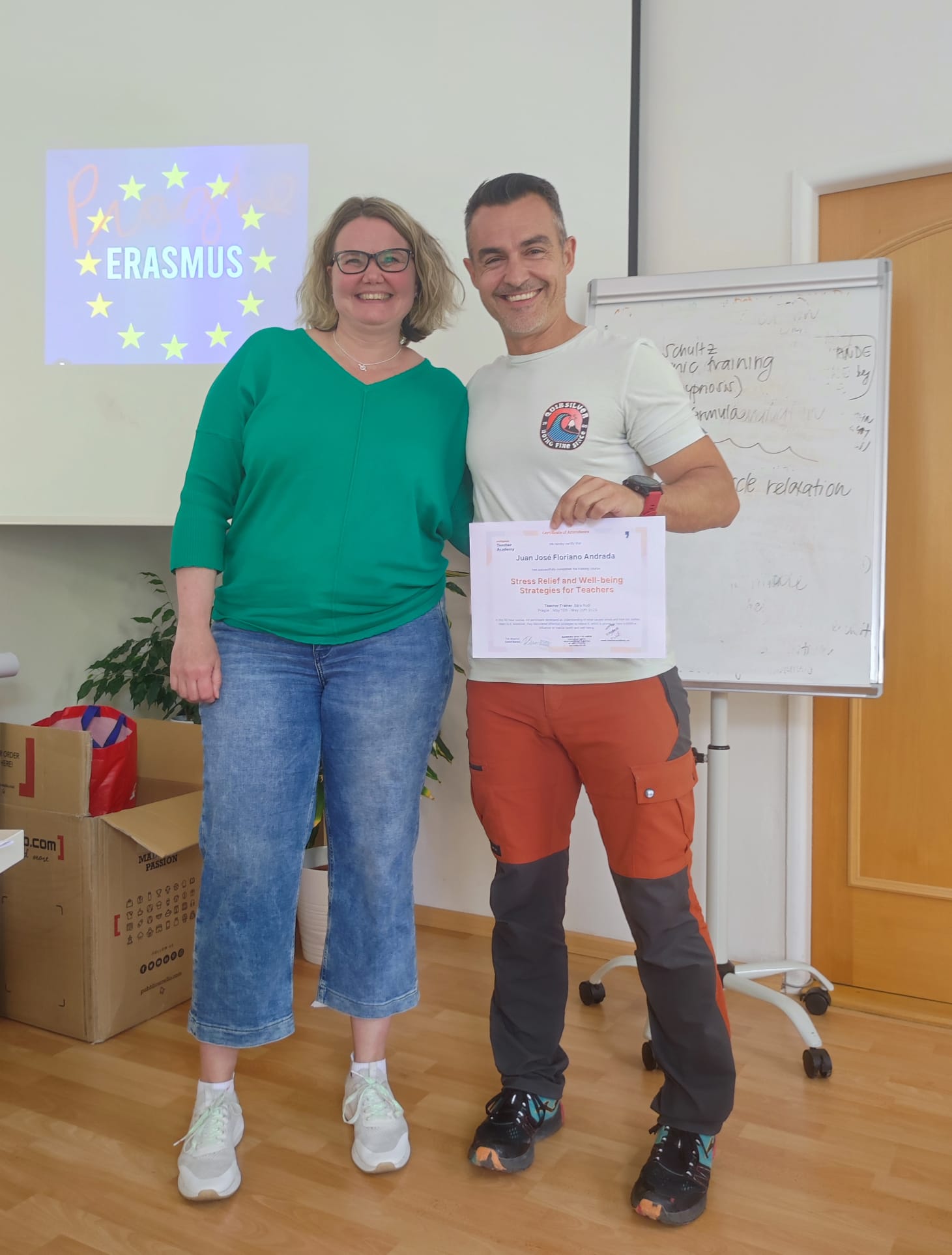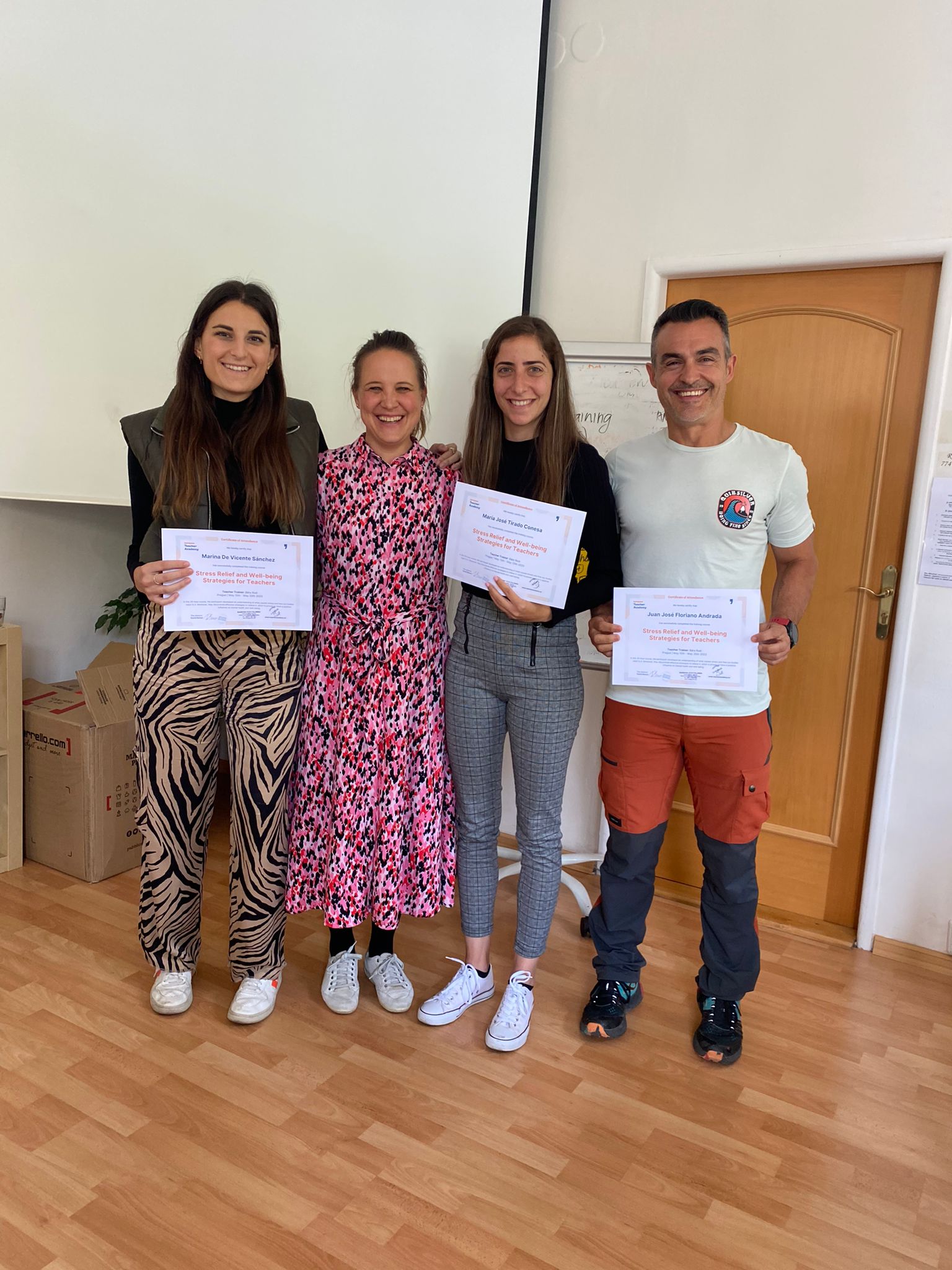 5. Mejorar el nivel global de bienestar de nuestro alumnado. Con esta formación se aprendieron actividades a través de las cuales los  jóvenes pudiesen comprender mejor la actividad física, lo cual tendrá repercusiones positivas a lo largo de todas sus vidas. Concienciarles de la importancia la educación física, desarrollar actitudes positivas y motivar a la juventud a participar en dichas actividades fue el principal objetivo. Para alcanzar este objetivo nuestro profesorado realizó el curso “Stress Relief and Well-being Strategies for teachers” en Praga, República Checa.